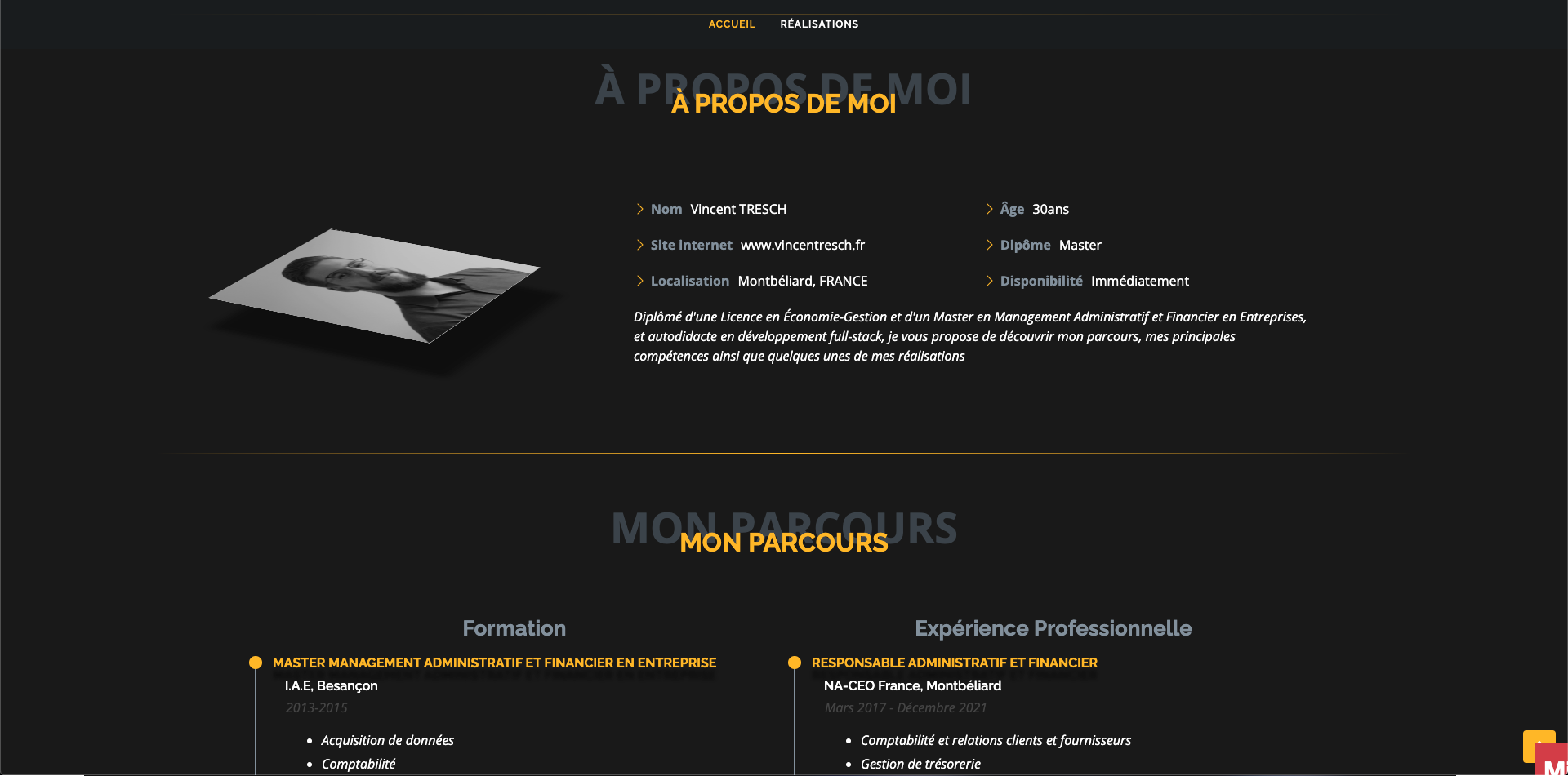 Diplômé d'une Licence en Économie-Gestion et d'un Master en Management Administratif et Financier en Entreprises, et autodidacte en développement full-stack, je vous propose de découvrir mon parcours, mes principales compétences ainsi que quelques unes de mes réalisations.